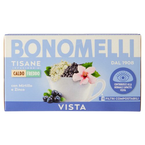 Mirtillo foglie (Vaccinium myrtillus L.) 25%, ibisco fiori (Hibiscus sabdariffa L.) 24%, polpa di mela (Malus domestica Borkh.), arancio scorza [Citrus aurantium subsp. sinensis (L.) Engl.], aromi naturali, mirtillo frutto (Vaccinium myrtillus L.) 3%, ribes nero frutto (Ribes nigrum L.) 3%, aronia frutto [Aronia melanocarpa (Michaux) S. Elliott] 2%, sambuco fiori (Sambucus nigra L.) 2%, zinco gluconato 2%.