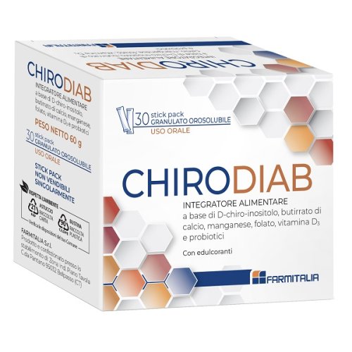 Integratore alimentare a base di D-chiro-inositolo, butirrato di calcio, manganese, folato, vitamina D3 e probiotici.