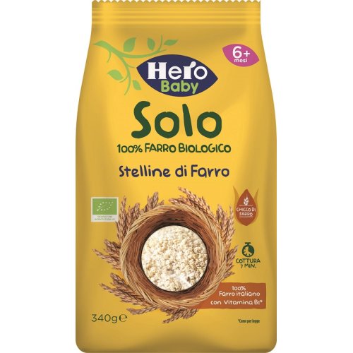 Le pastine Hero Baby sono fatte con farine di cereali attentamente selezionate e acqua di montagna. Le stelline di farro sono prodotte con farro 100% italiano e biologico.
