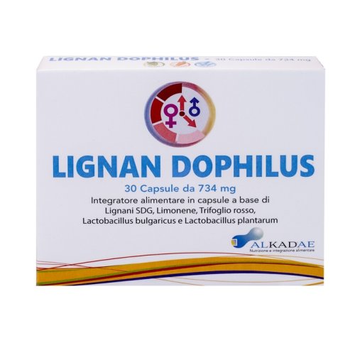 Integratore alimentare in capsule a base di Lignani SDG, Limonene, Trifoglio rosso, Lactobacillus bulgaricus e Lactobacillus plantarum.